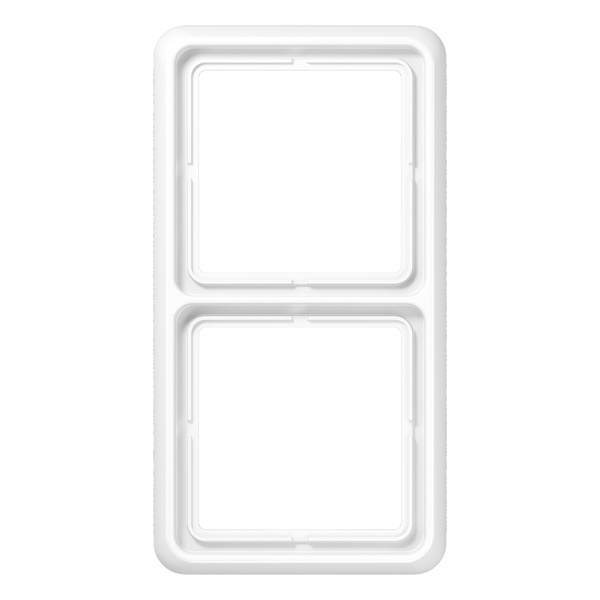 Rahmen 2fach, alpinweiß für waagerechte und senkrechte Kombination Mit Dichtungsflansch Art.-Nr.: 551 WU ist der Schutzgrad IP44 gewährleistet. Material: Duroplast Maße (B x H): 81 x 152 mm