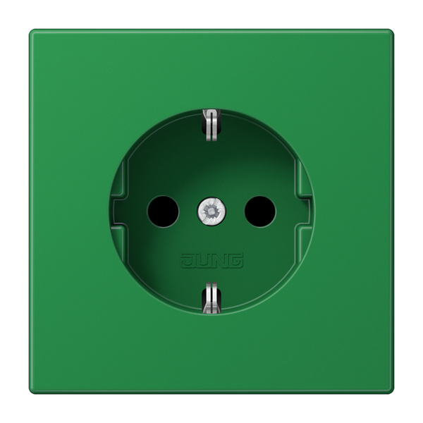 SCHUKO®-Steckdose, grün (für SV) mit Federklemmen für starre und unbehandelte flexible Leiter bis 2,5 mm2 Verbindungsklemmen nach DIN VDE 0620 Tragring, Krallen und Krallenschrauben sind über eine Erdungsschiene in die Schutzmaßnahme eingebunden. Material: Thermoplast Maße (B x H): 70 x 70 mm