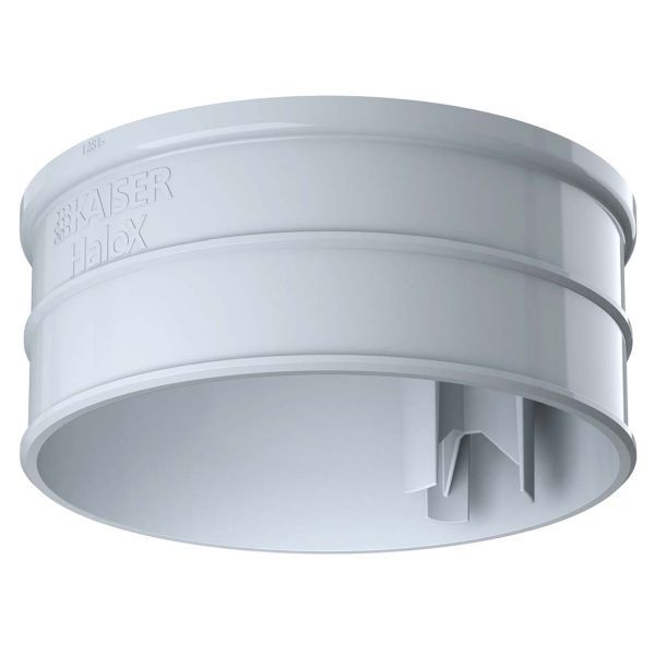 "Verlängerungsringe HaloX® (1281-50). Für die Verarbeitung im Ortbeton ist das formstabile HaloX®-System modular aufgebaut. Drei Gehäusedurchmesser mit einer Vielzahl an runden, quadratischen sowie universellen Frontteilen ermöglichen die Integration von Leuchten und Lautsprechern bis zu einem Einbaudurchmesser von 250 mm û auch bei Sichtbeton. Mit Tunnel bietet das System ausreichend Raum für die Aufnahme von Betriebsgeräten, z. B. LED-Treiber. Optionale Verlängerungsringe dienen der Vergrößerung der Einbautiefe. Alle Frontteile sind feuchtigkeitsabweisend und können bereits vor dem Verlegen der ersten Bewehrung exakt positioniert und aufgenagelt werden. Gehäuse und Frontteile werden kraftschlüssig und stabil miteinander verrastet und lassen sich auch nachträglich noch frei ausrichten. Durch die werkzeuglose Öffnungstechnik mit Kombinationseinführung M20/M25 können Rohre einfach und schnell eingeführt werden und selbst bei Fehlbelegung lässt sich die Einführung einfach wieder verschließen. Sie bietet eine sichere Rohrrückhaltung mit Tiefenanschlag, so dass ein nachträgliches innenseitiges Kürzen der Rohre entfällt. Nach dem Vergießen lassen sich Frontteile mit definiertem Einbaudurchmesser durch einen gezielten Hammerschlag öffnen. Die Frontteile für universelle Öffnungsmaße können flächig an- oder überspachtelt werden. Anschließend erfolgt die Erstellung der gewünschten Installationsöffnung mit herkömmlichen Fräswerkzeugen, z. B. MULTI 4000. Installationsart: Ortbeton