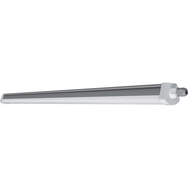 Feuchtraumleuchte, durchverdrahtet (L, N, E). Produkteigenschaften: Hohe Lichtausbeute: bis zu 120 lm/W. Schutzart: IP66. Ausstrahlungswinkel: 120°. Durchverdrahtung 3x1,5mm² bereits installiert. Gehäuse aus Polycarbonat. Produktvorteile: Gleichmäßige Lichtverteilung. Bis zu 50 % Energieersparnis (verglichen mit Leuchten, die Leuchtstofflampen verwenden). Einfache Installation dank Montageklammern, die frei an der Leuchte positioniert werden können. Einfacher Zugang zum Anschlussterminal dank Endkappe mit Twist-and-Lock-Mechanismus. Werkzeugloser elektrischer Anschluss dank Push-Button-Anschlussklemme. Anwendungsgebiete: Industrie- und Lagerareale. Parkplätze und Unterführungen. Garagen. Werkstätten, Fertigungsstraßen. Technische Ausstattung: Klammern aus Edelstahl und Sicherheitsschrauben enthalten. Montagezubehör enthalten (Abhängungs-Kit, Diebstahlschutz-Kit).