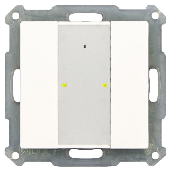 01 KNX RF+ Funk Taster Plus 2-fach mit Aktor, 55 mm, Reinweiß glänzend. Ausführung mit 2 Tasten und LEDs für Betriebs-/Statusanzeige und Orientierungslicht. Strom max. 10 A bei ohmscher Last, 10 A bei 14 µF / 2 EVG. Für den Betrieb innerhalb der EU, 868 MHz. KNX RF+ Protokoll im System Mode. Inbetriebnahme ab ETS 5. Passend für 55 mm Schalterprogramme. Die Tasten sind als Tastenpaar oder Einzeltasten frei einstellbar. Schließer- und Öffnerbetrieb, Länge des Tastendruckes einstellbar. Werte senden, Zwangsführung und Schaltbefehle einstellbar. Kurzer/Langer Tastendruck mit 2 Objekten. Ein- und Zweitasterbetrieb für Dimmer/Jalousiefunktionen. Betrieb als 2-fach Schaltaktor oder 1-fach Jalousieaktor. Anbindung über MDT KNX RF+ Funk Linienkoppler. Mittiges Schriftfeld mit Deckfolie zur individuellen Beschriftung. Als Ersatz für herkömmliche Serienschalter. Zur Modernisierung ohne Verlegung von KNX-Buskabeln. Spannungsversorgung 230 V AC. Einbau in Schalterdose mit mitgeliefertem Tragring. 3 Jahre Produktgarantie.