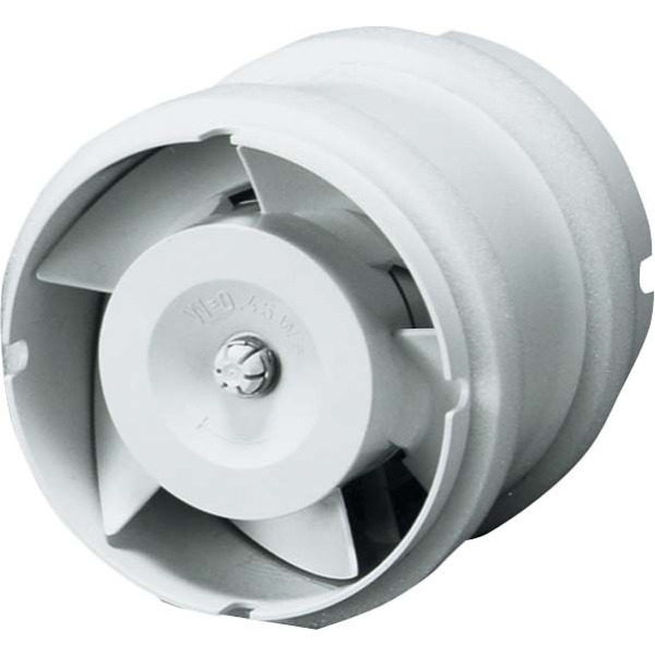 ECA 15/4 E und ECA 15/2 E: Passend in Rohre DN 150. Rohreinschubventilator für Einbau in Wickelfalzrohre. Für Be- oder Entlüftung, je nach Einbaulage im Rohr. Gehäuse aus schlagfestem Kunststoff. Schutzklasse II. Farbe verkehrsweiß ähnlich RAL 9016. Berührungsschutz gemäß DIN EN ISO 13857 erforderlich, z. B. durch Schutzgitter SG und Verschlussklappe AP. Schutzgitter und selbsttätige Verschlussklappe als Zubehör. Drehzahlsteuerbar, Ausnahme: ECA 15/2 E. Motor: Robuster Motor mit Kugellager, wartungsfrei. Für Dauerbetrieb geeignet. Thermischer Überlastungsschutz. Durch die Technik des Phasenanschnitts kann im unteren Drehzahlbereich ein physikalisch bedingtes Brummgeräusch auftreten. Montagehinweis: In trockenen Räumen für jede Einbaulage geeignet.Artikel: ECA 15/4 E, Fördervolumen: 170 m3/h, Drehzahl: 1420 1/min, Drehzahlsteuerbar: ja, Reversierbarkeit: nein, Spannungsart: Wechselstrom, Bemessungsspannung: 230 V, Netzfrequenz: 50 Hz / 60 Hz, Leistungsaufnahme: 18 W, INenn: 0,1 A, IMax: 0,12 A, Schutzart: IP 44, Netzzuleitung: 3 / 1,5 mm2, Einbauart: Unterputz, Einbaulage: beliebig, Material: Kunststoff, Farbe: verkehrsweiß, ähnlich RAL 9016, Gewicht: 1,097 kg, Gewicht mit Verpackung: 1,15 kg, Nennweite: 150 mm, Breite: 146 mm, Höhe: 146 mm, Tiefe: 120 mm, Breite mit Verpackung: 155 mm, Höhe mit Verpackung: 155 mm, Tiefe mit Verpackung: 135 mm, Fördermitteltemperatur bei IMax: 40 °C, Schalldruckpegel: 29 dB(A) / Abstand 3 m, Freifeldbedingungen