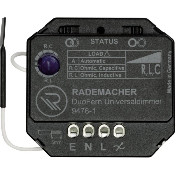 Der Funk-Universaldimmer (Unterputz) ist ein funkfähiger Unterputzdimmer zum Schalten und Dimmen von dimmbaren 230 V Leuchtmitteln. Der Universaldimmer eignet sich z.B. für Glühlampen/HV Halogenlampen, elektronische Trafos für Halogen- oder LED-Lampen sowie für Retrofit HV-LEDs. Der Funk-Universaldimmer wird durch die Funk-Sender und -Zentralen bedient und bietet zusätzlich die Anschlussmöglichkeit von Schaltern oder Tastern zur manuellen Bedienung vor Ort. Durch seine automatische Lastarterkennung wird die angeschlossene Lastart bzw. das passende Dimmprinzip erkannt. Die Mindest-/ Maximalhelligkeit über eine zusätzlich manuelle Einstellmöglichkeit an unterschiedliche Leuchtmittel anpassbar. Seine kompaktere und schmalere Bauform erleichtert den Einsatz in einer Unterputzdose - somit ist er ideal für die Nachrüstung. Der Funk Universaldimmer hat eine Sendefrequenz von 434,5 MHz und die Sendeleistung beträgt max. 10 mW. Der Durchmesser beträgt ca. 48 mm, die Höhe: ca. 20 mm. Für optimales Lichtambiente unterstützt der Universaldimmer umfangreiche Automatikfunktionen. So sind Zwischenwert- und Treppenhausfunktion also das automatische Ausschalten des Lichts nach einer festgelegten Zeit ebenso individuell einstellbar wie die Dimmgeschwindigkeit. Zusätzlich lassen sich die Mindest- und die Maximalhelligkeit auch manuell an das Leuchtmittel anpassen. Der neue Dimmer kann über die HomePilot-App, aber auch über einen Wandtaster bequem gesteuert werden.