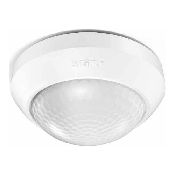 Das Multitalent für innen und außen. Infrarot-Bewegungsmelder IS 2360-3 ECO, 3 Pyro-Sensoren für 360° Erfassungswinkel, Reichweite bis 12 m, Zeit- und Dämmerungsschwelle einstellbar, durch Abdeckblenden einschränkbarer Erfassungsbereich.
