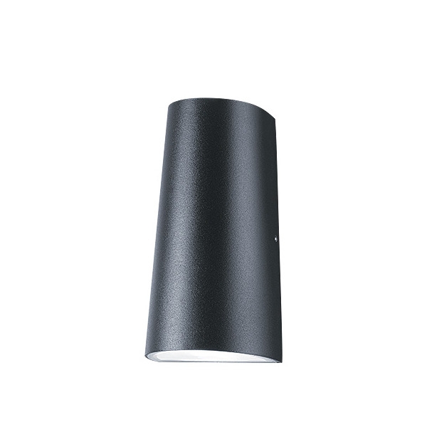 Halbrunde, kegelförmige Wandleuchte, UP- und Downlight (IP65) für Außenanwendungen. Gehäuse: Aluminiumdruckguss, schwarz. Farbtemperatur: 3000 K (Warmweiß). Farbwiedergabe-Index: Ra80. LED-Lebensdauer: 50.000 Std., dann Reduktion des Lichtstroms auf 80 % des Ausgangswerts. Leuchten Leistung: 8 W, 500 Lumen @ 63 lm/W, IK04, IP65, 230 V. Schnelle Montage über Anschlussklemmen für Drähte von bis zu 2,5mm². Abmessungen: 94 x 160 x 58mm, Gewicht: 0,52 kg