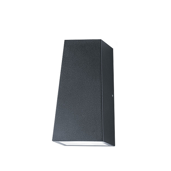 Quadratische, kegelförmige LED-Wandleuchte (IP65) für Außenanwendungen. Gehäuse: Aluminiumdruckguss, schwarz. Farbtemperatur: 3000 K (Warmweiß). Farbwiedergabe-Index: Ra80. LED-Lebensdauer: 50.000 Std., dann Reduktion des Lichtstroms auf 80 % des Ausgangswerts. Leuchten Leistung: 5 W, 300 Lumen @ 60 lm/W, IK04, IP65, 230 V. Schnelle Montage über Anschlussklemmen für Drähte von bis zu 2,5mm². Abmessungen: 94 x 160 x 60mm, Gewicht: 0,52 kg