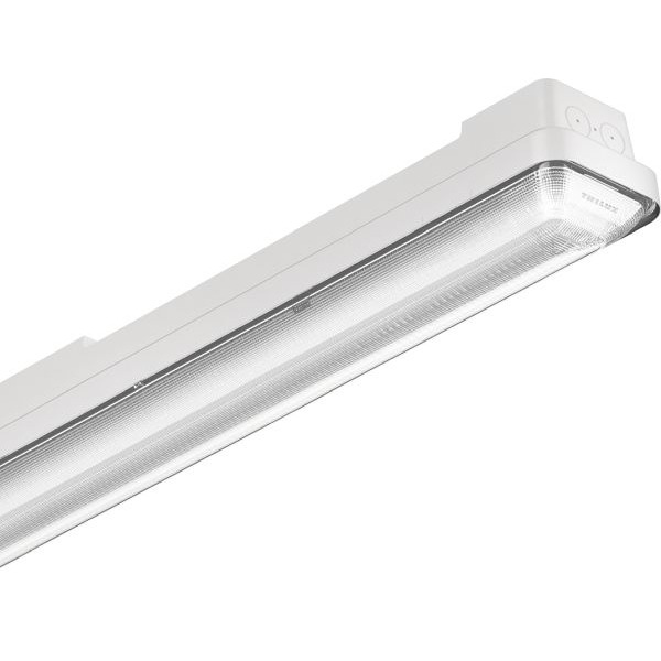 LED-Feuchtraum-Anbauleuchte IP66 mit PC-Leuchtenkörper und PMMA-Diffusor. Vorteilhaft bei erhöhten Anforderungen an die mechanische Stabilität. Erfüllt DIN 10500. Mit begrenzter Oberflächentemperatur, für den Einsatz in feuergefährdeten Räumen gemäß DIN EN 60598-2-24 geeignet. Mit Cliplos-Verschlusstechnik zur schutzartgerechten, einfachen Montage von Diffusor-Abdeckwanne und Leuchtenkörper nach dem Anschluss. Für Decken- und Wand- sowie abgehängte Montage. Deckenmontage über beiliegende Edelstahl-Befestigungsklammer. Abgehängte Montage über optionales Zubehör möglich. PMMA-Diffusor mit innen liegender Prismenstruktur. Mit symmetrisch breit strahlender Lichtstärkeverteilung. Bemessungslichtstrom 4000 lm, Bemessungsleistung 33,00 W, Leuchten-Lichtausbeute 121 lm/W. Lichtfarbe neutralweiß, ähnlichste Farbtemperatur (CCT) 4000 K, allgemeiner Farbwiedergabeindex (CRI) Ra > 80. Die Lichtquelle ist entsprechend der Ökodesign-Anforderungen (VO (EU) 2019/2020) austauschbar. Leuchtenkörper aus PC. (RAL 9016). Mit Cliplos-Verschlusstechnik zur schutzartgerechten, einfachen Montage von Diffusor-Abdeckwanne und Leuchtenkörper nach dem Anschluss. Maße (L x B): 1257 mm x 102 mm, Leuchtenhöhe 91 mm. Schutzklasse (EN 61140): I, Schutzart (DIN EN 60529): IP66, Stoßfestigkeitsgrad nach IEC 62262: IK03, Prüftemperatur Glühdrahttest gemäß IEC 60695-2-11: 650 °C. Gewicht: 2,3 kg. Mit 3-poliger Anschlussklemme bis 2,5 mm2. Mit elektronischem Betriebsgerät, schaltbar. Die Leuchte ist für den Betrieb an einem 230V Gleichspannungsnetz (DC) geeignet. Das Betriebsgerät ist entsprechend der Ökodesign-Anforderungen (VO (EU) 2019/2020) austauschbar. Das Produkt erfüllt die grundlegenden Anforderungen der anwendbaren EU-Richtlinien und des Produktsicherheitsgesetzes und trägt die CE-Kennzeichnung. Zusätzlich ist die Leuchte durch eine unabhängige Prüfstelle ENEC-zertifiziert.