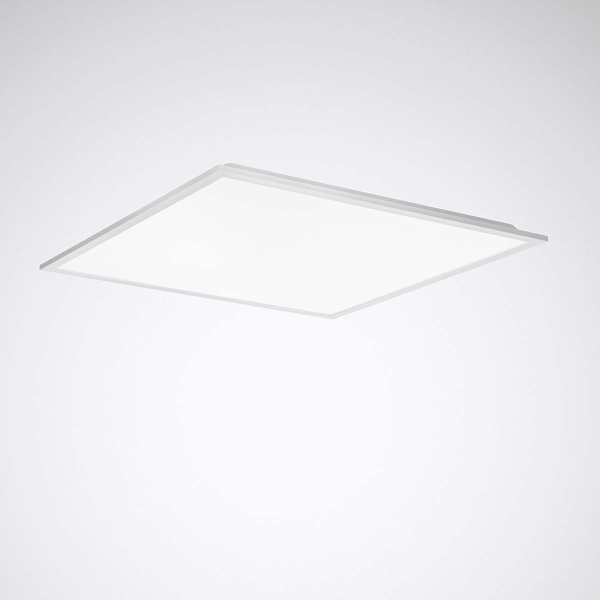 Quadratische LED-Deckeneinbauleuchte mit prismierter PMMA-Abdeckung. Ausführung M84 (625 mm x 625 mm). Für Systemdecken mit sichtbaren Tragschienen. Ausführung M84, Systemmaß 625 x 625 mm. PMMA-Abdeckung mit Mikroprismatik. Mit tief-breit strahlender Lichtstärkeverteilung. Blendungsbewertung nach UGR-Einstufung (EN 12464-1) < 19. Bildschirmgerecht gemäß EN 12464-1 durch begrenzte Leuchtdichten L = 3000 cd/m2 für Ausstrahlungswinkel oberhalb 65° rundum. Harmonische Lichtwirkung durch gleichmäßig ausgeleuchteten Lichtaustritt. Bemessungslichtstrom 3400 lm, Bemessungsleistung 31,00 W, Leuchten-Lichtausbeute 109 lm/W. Lichtfarbe warmweiß, ähnlichste Farbtemperatur (CCT) 3000 K, Farborttoleranz (initial MacAdam) = 5 SDCM, allgemeiner Farbwiedergabeindex (CRI) Ra > 80. Mittlere Bemessungslebensdauer L65(tq 25 °C) = 50.000 h. Leuchtenkörper aus Aluminium. Oberfläche weiß beschichtet (RAL 9016). Maße (L x B): 620 mm x 620 mm, Leuchtenhöhe 65 mm. Gewicht: 2,4 kg. Mit elektronischem Betriebsgerät, digital dimmbar (DALI). Betriebsgerät gemäß DALI-2-Standard (EN 62386). Das Produkt erfüllt die grundlegenden Anforderungen der anwendbaren EU-Richtlinien und des Produktsicherheitsgesetzes und trägt die CE-Kennzeichnung. Die Leuchte ist DALI-dimmbar und kann in das Lichtmanagementsystem TRILUX LiveLink eingebunden werden.