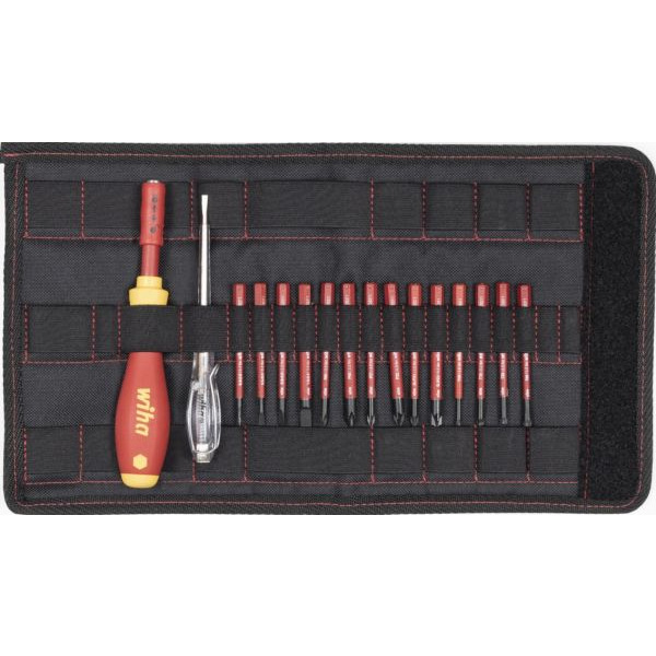 Zum Verschrauben im Bereich von spannungsführenden Teilen bis 1.000 V AC. Bei der täglichen Arbeit an spannungsführenden Teilen wird der Elektriker oft mit verschiedenen Schraubprofilen konfrontiert. Mit dem Schraubendrehergriff SoftFinish® inklusive wechselbarer slimBits können gleich mehrere Anwendungen abgedeckt werden, ohne für jedes Profil einen separaten Schraubendreher mitführen zu müssen. Der ergonomisch geformte Schraubendrehergriff mit Abrollschutz liegt zudem gut in der Hand und schont bei der Arbeit Sehnen und Gelenke. Dank der Wiha slimTechnology können die enthaltenen slimBits mit ihrer bis zu 33% schlankeren Klinge auch tiefliegende Schraub- und Federelemente mühelos erreichen. Der isolierte Schraubendrehergriff sowie die slimBits werden gemäß der internationalen Norm IEC 60900 einer Stückprüfung unterzogen und ermöglichen ein sicheres Arbeiten an unter Spannung stehenden Teilen bis 1.000 V AC. Geprüft gemäß IEC 60900. Inhalt: 1x Schraubendreher mit Bithalter SoftFinish® electric slimVario für slimBits 6 mm (34577) 1x Bit slimBit electric Schlitz 2,5 mm (34578) 1x Bit slimBit electric Schlitz 3 mm (34579) 1x Bit slimBit electric Schlitz 4 mm (34580) 1x Bit slimBit electric Schlitz 5,5 mm (34581) 1x Bit slimBit electric Phillips PH1 (34583) 1x Bit slimBit electric Phillips PH2 (34584) 1x Bit slimBit electric Pozidriv PZ1 (34585) 1x Bit slimBit electric Pozidriv PZ2 (34586) 1x Bit slimBit electric TX® T10 (35507) 1x Bit slimBit electric TX® T15 (35508) 1x Bit slimBit electric TX® T20 (35509) 1x Bit slimBit electric TX® T25 (36071) 1x Bit slimBit electric PlusMinus/Pozidriv SL/PZ1 (34589) 1x Bit slimBit electric PlusMinus/Pozidriv SL/PZ2 (34590) 1x Spannungsprüfer SoftFinish® einpolig, 110 - 250 Volt Schlitz transparent, mit Ansteckclip 3 mm (34745)
