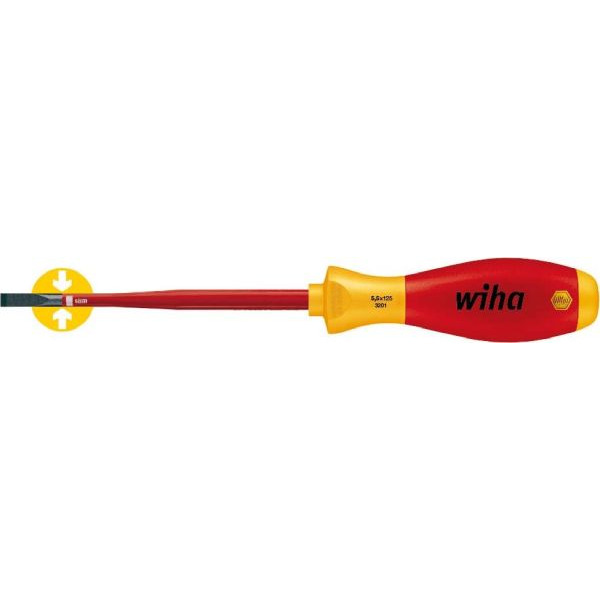 Einzigartiges Wiha Griffgrößen-Konzept mit optimaler Balance zwischen Kraft und Kontrolle. Schont Ihre Gesundheit: Mit patentiertem SoftFinish® Griffdesign für hand- und muskelschonendes Arbeiten. Von Ärzten und Therapeuten des AGR empfohlen! Bietet Ihnen vollen Schutz: Jedes Werkzeug einzeln bei 10.000 V AC getestet und zugelassen für 1.000 V AC. Erhöht Ihre Sicherheit: Wiha slim Klingen gewährleisten guten und geschützten Zugang zu tief liegenden Schrauben. Für Arbeiten im Bereich von spannungsführenden Teilen bis 1.000 V AC. Normen: Geprüft gemäß IEC 60900. Beim händischen Verschrauben werden auf Dauer die Handgelenke und Muskeln stark belastet. Abhilfe verschafft der besonders ergonomisch geformte SoftFinish® Schraubendreher, der für eine optimale Übertragung der Handkraft sorgt. Mit den langen, schlanken Griffgrößen können kleine Schrauben sicher und schnell eingedreht werden. Für das Eindrehen großer Schrauben gibt es großvolumige Griffgrößen, mit denen höhere Drehmomente aufgebracht werden können. Außerdem sind die verschiedenen Griffgrößen an die stets gleich große Hand von schraubenden Profis angepasst. Der Abrollschutz und das am Griffende aufgedruckte Schraubensymbol sorgen für effizientes Arbeiten. Bei der speziell für elektrische Anwendungen entwickelten Wiha slimTECHNOLOGY wurde die Schutzlisolation in die Klinge intergriert, um bis zu 33% schlankere Klingen zu ermöglichen. So können auch tiefliegende Schraub- und Federelemente mühelos erreicht werden. Die isolierten Schraubendreher werden gemäß der internationalen Norm IEC 60900 einer Stückprüfung unterzogen und ermöglichen ein sicheres Arbeiten im Bereich von spannungsführenden Teilen bis 1.000 V AC. DIN ISO 2380.