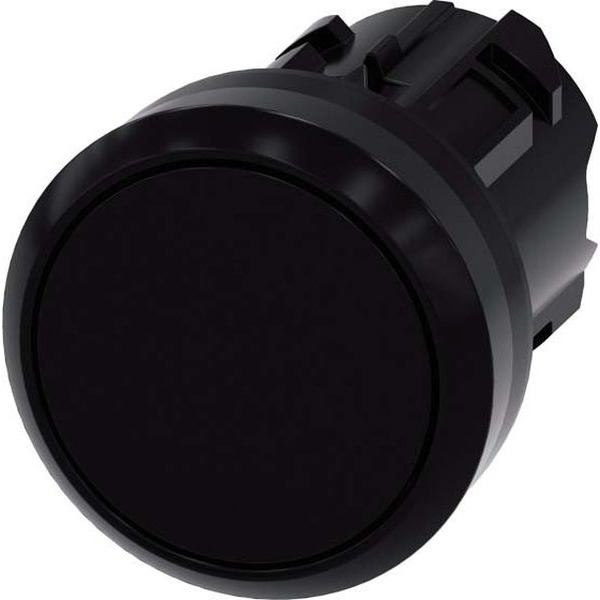 Drucktaster, 22 mm, rund, Kunststoff, schwarz, Druckknopf, flach, tastend Drucktaster SIRIUS ACT zur Schaltung und Steuerung elektrischer Verbraucher.Unter dem Markennamen SIRIUS ACT bietet Siemens ein einzigartiges Portfolio an Befehls- und Meldegeräten mit weltweiten Produkt-Zulassungen in vier modernen Designreihen aus robustem Echtmetall und hochwertigem Kunststoff.Das innovative Aufschnappkonzept vereinfacht die Montage so weit, dass dafür nur eine Hand und kein Spezialwerkzeug erforderlich ist. Als Montagebohrungen genügen nutfreie Löcher, da bereits ein 100%iger Verdrehschutz integriert ist.Dank der durchgängig hohen Schutzart sind die robusten Geräte industrietauglich und für den Außeneinsatz geeignet. Sogar die Reinigung mit Hochdruckstrahl ist möglich. Weder Staub, Öle noch aggressive Laugen können den zuverlässigen Betrieb stören.Neben der Standardverdrahtung können die meisten Geräte auch über PROFINET, AS-Interface oder IO-Link an die Steuerung angebunden werden. Damit reduzieren Sie Ihren Verdrahtungsaufwand, minimieren Fehlerquellen und gewinnen mehr Flexibilität.Komfortabel unterstützt der grafische Online-Konfigurator bei Auswahl und Bestellung von Einzelgeräten, Gehäusen und Beschriftungen. Umfangreiche Dokumentation (z.B. Handbuch, 3D-Daten, Anschlussdiagramm) ist verfügbar.Lieferbare Ausführungen: mehrere Farben, beleuchtet/unbeleuchtet, mit/ohne Beschriftung, verrastende/tastende Betätigung, verschiedene Druckknopf- und Frontringhöhen.Hinweis: Einzelgerät, Halter und Module bitte extra bestellen.SIRIUS ACT - Performance in Action beim Befehlen und Melden. Einfach montiert, einfach stark, einfach perfekt.