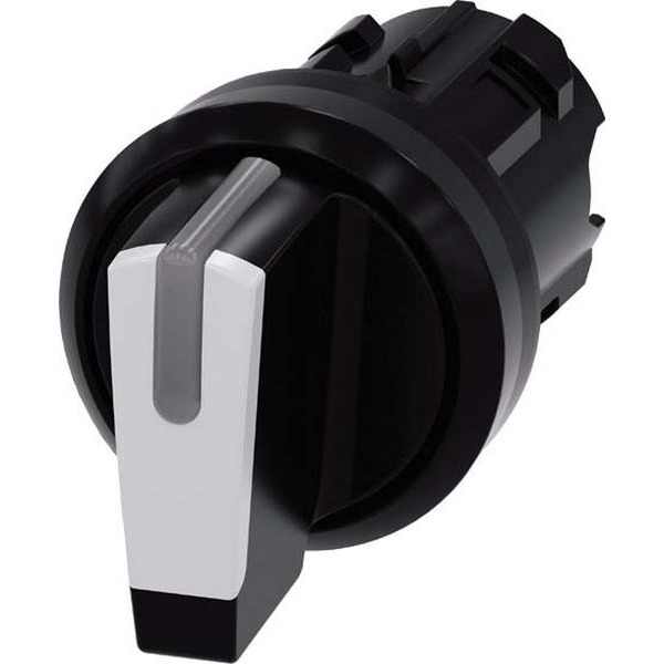 Knebelschalter, beleuchtbar, 22 mm, rund, Kunststoff, weiß, Knebel, kurz, 3 Schaltstellungen I-O-II, verrastend, Schaltwinkel 2x45°, 10:30h/12h/13:30h Knebelschalter SIRIUS ACT zur Schaltung und Steuerung elektrischer Verbraucher.Unter dem Markennamen SIRIUS ACT bietet Siemens ein einzigartiges Portfolio an Befehls- und Meldegeräten mit weltweiten Produkt-Zulassungen in vier modernen Designreihen aus robustem Echtmetall und hochwertigem Kunststoff.Das innovative Aufschnappkonzept vereinfacht die Montage so weit, dass dafür nur eine Hand und kein Spezialwerkzeug erforderlich ist. Als Montagebohrungen genügen nutfreie Löcher, da bereits ein 100%iger Verdrehschutz integriert ist.Dank der durchgängig hohen Schutzart sind die robusten Geräte industrietauglich und für den Außeneinsatz geeignet. Sogar die Reinigung mit Hochdruckstrahl ist möglich. Weder Staub, Öle noch aggressive Laugen können den zuverlässigen Betrieb stören.Neben der Standardverdrahtung können die meisten Geräte auch über PROFINET, AS-Interface oder IO-Link an die Steuerung angebunden werden. Damit reduzieren Sie Ihren Verdrahtungsaufwand, minimieren Fehlerquellen und gewinnen mehr Flexibilität.Komfortabel unterstützt der grafische Online-Konfigurator bei Auswahl und Bestellung von Einzelgeräten, Gehäusen und Beschriftungen. Umfangreiche Dokumentation (z.B. Handbuch, 3D-Daten, Anschlussdiagramm) ist verfügbar.Lieferbare Ausführungen: mehrere Farben, 2-4 Schaltstellungen, kurzer/langer Knebel oder Drehknopf, beleuchtet/unbeleuchtet (Beleuchtung auch nachrüstbar), verrastende/tastende Betätigung.Hinweis: Einzelgerät, Halter und Module bitte extra bestellen.SIRIUS ACT - Performance in Action beim Befehlen und Melden. Einfach montiert, einfach stark, einfach perfekt.