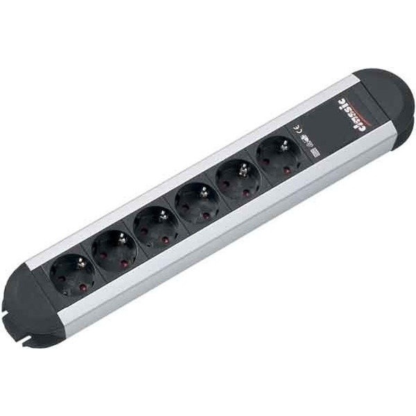 PRIMO Steckdosenleiste mit um 35° gedrehten Schutzkontakteinsätzen und abgerundeten Endstücken mit praktischer Kabelaufwicklung und Anschraubösen. 6fach Steckdosenleiste Zuleitung: H05VV-F 3G 1,50 mm², Länge 1,75m Gesamtleistung max. 16 A / 3.680 W Schutzkontakt-Steckdosen um 35° gedreht, mit vernickelten Schutzkontakten und integriertem Berührungsschutz Halogen- und PVC freie Steckdosentöpfe Verwindungssteifes Profil aus hochwertigem, eloxiertem Aluminium Angespritzter Schutzkontakt-Winkelstecker Abgerundete Endstücke mit praktischer Kabelaufwicklung und Anschraubösen