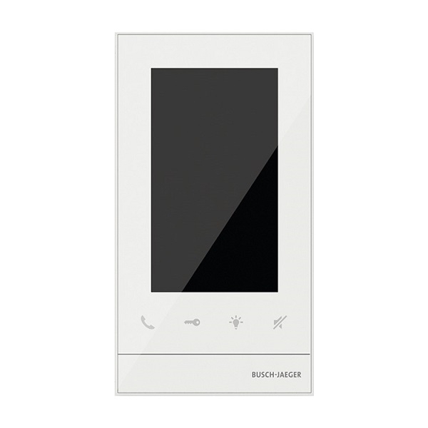 A0480 Darstellung des Videobildes der Außenstation. Während des Gesprächs kann ein Bild des Besuchers aufgenommen und im Bildspeicher abgelegt werden. Schnellzugriffstasten für Türöffnen, Stummschalten und Licht. Unterschiedliche Klingeltöne für Tür- und Etagenruf einstellbar, fünf polyphone Klingeltöne stehen zur Auswahl. Lautstärke der Klingeltöne einstellbar. Gerätetiefe bei Unterputzmontage in einer UP-Dose: 15,75 mm. Gerätetiefe bei Aufputzmontage: 21,5 mm. Ausgestattet mit einer Hörschleife zur Einkopplung des Audiosignals in Hörgeräte. Display-Auflösung: 480 x 854. Verbrauchseinheiten: 3. Produktreihe: Busch-Welcome® 2-Draht