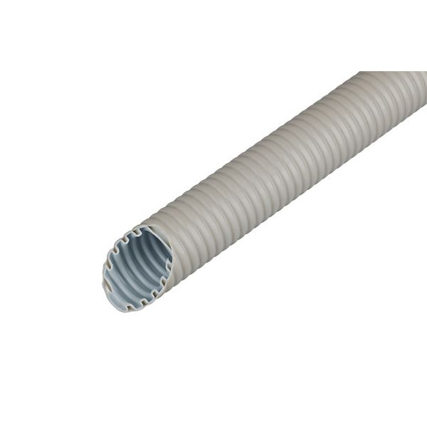 FFKuS-EM-F Highspeed ist ein mittleres Kunststoff-Wellrohr aus PVC, mit hochgleitfähiger Innenschicht, Kunststoffmantel, nicht flammenausbreitend, in Farbe grau.