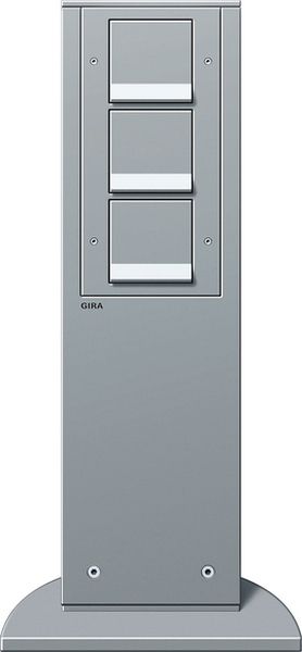 Gira Energiesäule Höhe 491 mm Farbe Alu 3 SCHUKO-Steckdosen Merkmale: Die beiden oberen Steckdosen sind um 30° gedreht. Der Anschluss erfolgt über eine 5-polige Schraubklemme für starre und flexible Leiter bis 4 mm². Hinweise: Bei Säulen bis 1400 mm Höhe Befestigung auf Stein- oder Betonsockel mit optional erhältlicher Erdhülse. Bei Säulen ab 1400 mm Höhe Befestigung nur mit 3 Schwerlastdübeln auf Stein oder Beton. Empfehlung: FI-Schutzschalter vor dem Gerät montieren. 1-Dübelbefestigung. Lieferumfang: Drei SCHUKO-Steckdosen sind im Lieferumfang enthalten. Das Befestigungsmaterial ist im Lieferumfang enthalten.
