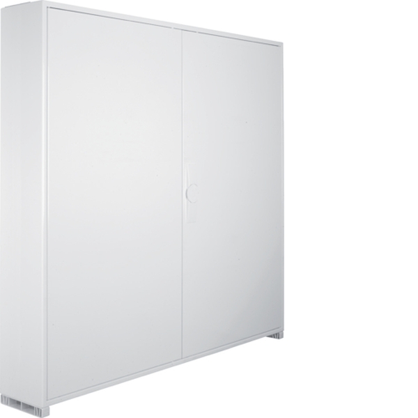 Feldvert. AP, univers, IP44, SKII, 288PLE, H:950xB:1050xT:161mm, QuickConnect.Feldverteiler nach DIN EN 61 439-1/-3, Maßnorm nach DIN 43 870. Zum Einbau für Geräte bis 125 A, Luft- und Kriechstrecken nach DIN EN 60664-1. Bestehend aus Schrank mit Tür aus pulverbeschichtetem und eingebranntem Stahlblech. Ab Schrankbreite 800 mm (3-feldig) zwei türiger Aufbau. Rechte Türen maximal 2-feldig breit. Komplettschrank mit Einbausatz bestückt mit profilierten Tragschienen, 7,5 mm hohen Hutschienen in 125 mm Mittenabstand und passenden Berührungsschutzabdeckungen, inklusiv PE/N-QuickConnect-Klemmen auf Träger montiert. Leitungseinführungen oben/unten durch herausnehmbare flexiblen Kunststoffflanschplatten, zusätzlich austauschbar. Tür mit innenliegenden justierbaren Scharnieren und einem Öffnungswinkel von 110°. Türen rechts und links anschlagbar, werkzeugloser wechselbar Türanschlag. Türverschluss serienmäßig mit Dreipunkt-Stangenverschluss und plombierbaren Klappgriff. Austauschbare sperrbare Schließsysteme und Türen, siehe Zubehör.