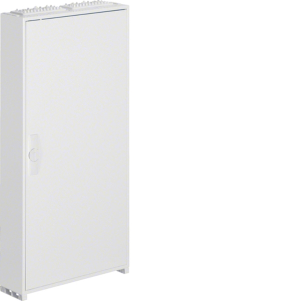 Feldvert. AP, univ., IP44, SKII, 168PLE, H:1100xB:550xT:161mm, QuickConnect.Feldverteiler nach DIN EN 61 439-1/-3, Maßnorm nach DIN 43 870. Zum Einbau für Geräte bis 125 A, Luft- und Kriechstrecken nach DIN EN 60664-1. Bestehend aus Schrank mit Tür aus pulverbeschichtetem und eingebranntem Stahlblech. Ab Schrankbreite 800 mm (3-feldig) zwei türiger Aufbau. Rechte Türen maximal 2-feldig breit. Komplettschrank mit Einbausatz bestückt mit profilierten Tragschienen, 7,5 mm hohen Hutschienen in 125 mm Mittenabstand und passenden Berührungsschutzabdeckungen, inklusiv PE/N-QuickConnect-Klemmen auf Träger montiert. Leitungseinführungen oben/unten durch herausnehmbare flexiblen Kunststoffflanschplatten, zusätzlich austauschbar. Tür mit innenliegenden justierbaren Scharnieren und einem Öffnungswinkel von 110°. Türen rechts und links anschlagbar, werkzeugloser wechselbar Türanschlag. Türverschluss serienmäßig mit Dreipunkt-Stangenverschluss und plombierbaren Klappgriff. Austauschbare sperrbare Schließsysteme und Türen, siehe Zubehör.