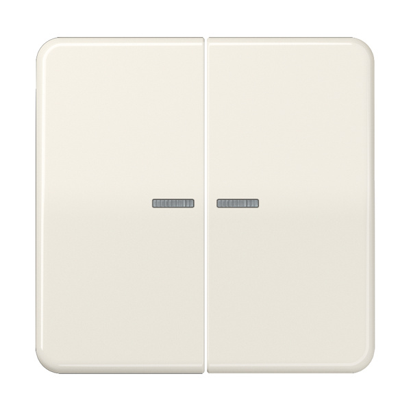 Es eine 2-fach Wippe in cremeweiß mit Lichtleitern, welche das Licht des Kontrollschalters zum Auge des Schalterbetrachters gelangen lassen.