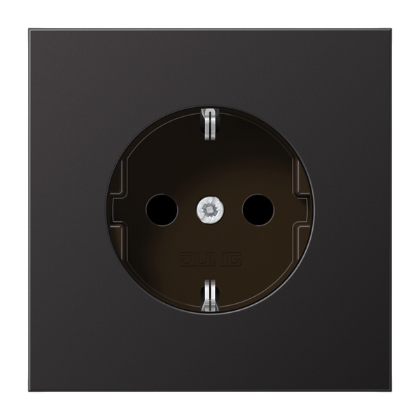 SCHUKO®-Steckdose, dark (lackiertes Aluminium) mit Federklemmen für starre und unbehandelte flexible Leiter bis 2,5 mm2 Verbindungsklemmen nach DIN VDE 0620 Tragring, Krallen und Krallenschrauben sind über eine Erdungsschiene in die Schutzmaßnahme eingebunden. Material: Aluminium lackiert Maße (B x H): 70 x 70 mm