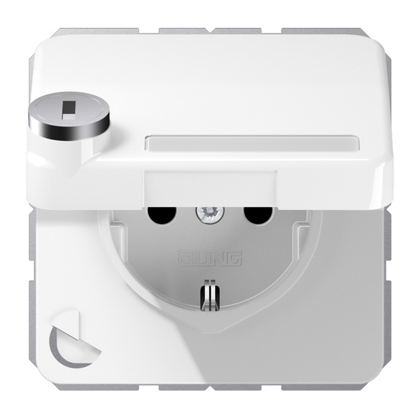 SLWW SCHUKO®-Steckdose, alpinweiß mit Klappdeckel (mit Rückstellfeder) mit Schriftfeld 9 x 39 mm mit Sicherheitsschloss (24 verschiedene Schließungen) mit 2 Schlüsseln mit integriertem erhöhten Berührungsschutz (Safety Plus) mit Federklemmen für starre und unbehandelte flexible Leiter bis 2,5 mm2 Verbindungsklemmen nach DIN VDE 0620 Tragring, Krallen und Krallenschrauben sind über eine Erdungsschiene in die Schutzmaßnahme eingebunden. Ersatzteil: Transparente Abdeckung mit Einlage Art.-Nr.: LS 90 NA Ersatzschlüssel Art.-Nr.: 802 SL bis 825 SL (Bei Bestellung bitte die zugehörige Schloss-Nr. angeben, z.B. 813 SL) Material: Thermoplast Maße (B x H): 67 x 67 mm