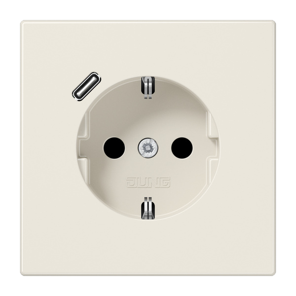 mit integriertem erhöhten Berührungsschutz (Safety Plus) mit 1 USB-Buchse Typ C mit Schnellladefunktion (JUNG Quick Charge®) mit Federklemmen für starre und unbehandelte flexible Leiter bis 2,5 mm2 Verbindungsklemmen nach DIN VDE 0620 Montage in Gerätedose mit Abmessungen nach DIN 49073 Tiefe der Gerätedose (Innenmaß): min. 57 mm Material: Thermoplast