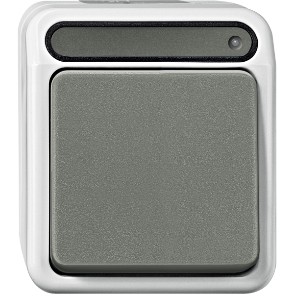 Beleuchtet. Auch als Aus-Kontrollschalter 1-polig verwendbar. Mit beiliegender Schriftfeldeinlage als Heizungs-Notschalter verwendbar. Eigenschaften-Frontseitiges Nachrüsten von Beleuchtungsmodulen ohne Schalterdemontage. Frontseitige Mess- und Prüfkontakte, zugänglich ohne Schalterdemontage. Aufputz-Montage. Mit Steckklemmen. Schutzart IP 44. Abmessungen ca. 83x73x56 mm. Zubehör LED-Leuchtanhänger, AC 100-230 V AQUASTAR MEG3901-8006. LED-Leuchtanhänger, AC/DC 8-32 V AQUASTAR MEG3922-8006. LED-Langfeldbeleuchtung, AC 100-230 V AQUASTAR MEG3903-8000. Schriftfeldeinlagen AQUASTAR MEG3957-8000. Doppeleinführung AQUASTAR MEG3961-80xx Verbindungsstück AQUASTAR MEG3963-80xx Rohreinführung AQUASTAR MEG3964-8029. Kanaleinführung AQUASTAR MEG3965-80xx Schieber mit Stutzen AQUASTAR MEG3962-8029. Lieferumfang Mit LED Leuchtanhänger MEG3901-8006. Mit Schriftfeldeinlage. Farbe lichtgrau.