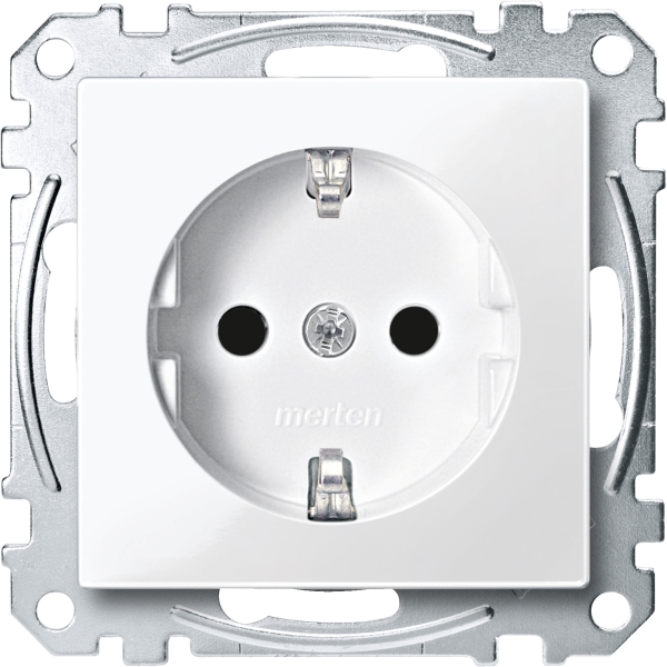 Integrierter erhöhter Berührungsschutz gemäß VDE 0620 Teil 1. Eigenschaften-Frontseitiges Nachrüsten von QuickFlex-Zusatzmodulen ohne Demontage der Steckdose. Schnellgewindeschrauben für die Krallenbefestigung. Versenkte Krallen mit Rückstellfeder. Hochglanzverzinkter Tragring isoliert zur Kralle. Mit Krallen- und Schraubbefestigung. Mit Schraub-Liftklemmen für starre und flexible Leiter bis 4 mm². Zubehör Erweiterungsset Überspannungsschutz für SCHUKO-Steckdosen System M MEG2335-03xx/-04xx. Erweiterungsset LED Beleuchtung für SCHUKO-Steckdosen System M MEG2334-03xx/-04xx. Erweiterungsset Kontrolllicht für SCHUKO-Steckdosen System M MEG2333-03xx/-04xx. Material Thermoplast brillant. Farbe polarweiß glänzend.