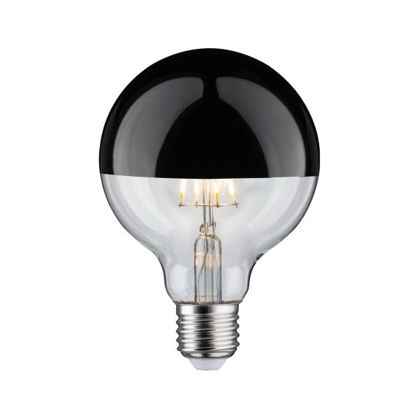 Die Kopfspiegel Globenlampe mit einer Leistung von 6,5 Watt und einem Durchmesser von 95, gibt ihr Licht in alle Richtungen ab. Die ideale Lampe für Pendel und andere Deckenleuchten. Sie hat eine angenehm warmweiße Lichtfarbe und passt in jede handelsübliche E27-Fassung. Klassisch schön Warmes und wohnliches Licht im Stil des Kohlefadens Effiziente LED-Technik Farbtemperatur: 2700K - Warmweiß Dimmbar
