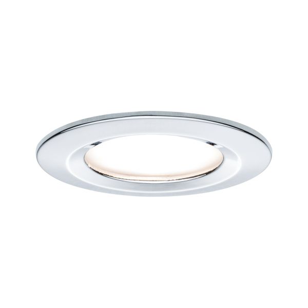 Die runden Nova Einbaustrahler in Chrom mit 3x6,5W und 3x460lm, bieten gutes Licht, stimmiges Design und hohe Energieeffizienz. Die puristische Optik wird nicht von Sprengringen gestört: Da das Leuchtmittel von hinten eingesetzt wird ist kein Sprengring notwendig. Dank 230V-Direktanschluss, können die Leuchten ganz einfach uneingeschränkt miteinander verkettet werden. Durch die unkomplizierte Fixierung mit Haltefedern, bleibt die Zimmerdecke auch nach mehrmaligem Ein- und Ausbau unbeschädigt. Im Lieferumfang sind effiziente und langlebige GU10 LED-Leuchtmittel enthalten, die mit ihrem warmweißen Licht für ein stimmungsvolles Ambiente sorgen. Dank integrierter 3-Step-Dim-Funktion, kann sie durch mehrmaliges Betätigen eines handelsüblichen Lichtschalters in drei Stufen gedimmt werden. Inkl. auswechselbarem LED Leuchtmittel Farbtemperatur: 2700K - Warmweiß Einfaches Einsetzen des Leuchtmittels ohne Sprengring Für den 230V-Direktanschluss Mit handelsüblichem Lichtschalter in 3-Stufen dimmbar