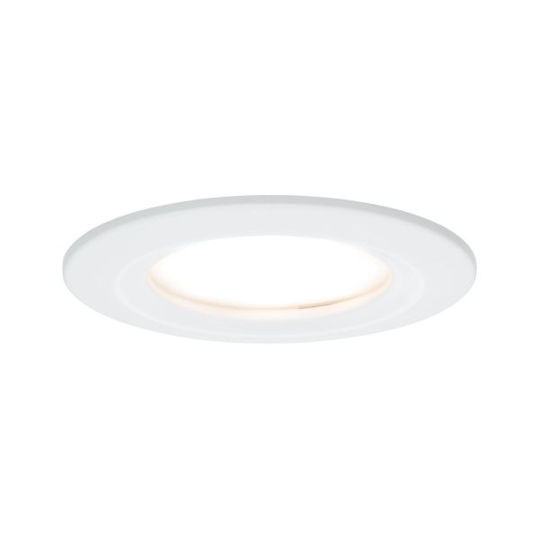 Die runde Nova Plus Einbauleuchte in Weiß matt mit tauschbarem LED-Coin, eignet sich sowohl für Neuinstallationen als auch für den Austausch bestehender Installationen. Sie ist besonders flach und kann deshalb in Decken mit einem Hohlraum von nur 30 Millimetern eingebaut werden. Durch die Verkettung der Einzelleuchten mittels Schnellklemmen, lassen sie sich schnell und einfach einbauen. Die Dimmfunktion ermöglicht eine individuelle Anpassung der Helligkeit und sorgt für warmweißes Arbeitslicht und gemütliche Wohlfühlbeleuchtung in einem. Mit ihrem IP44-Spritzwasserschutz sorgt die Leuchte auch im Badezimmer und in der Küche für wohnliches Licht. Set aus 1 Leuchte inkl. LED-Modul Farbtemperatur: 2700K - Warmweiß Mit satiniertem Schutzglas Sehr flach - der Einbau ist auch bei geringen Hohlraumtiefen von nur 30 mm möglich Für den 230V-Direktanschluss Inkl. Anschlussbox mit Doppelschnellklemme zum Durchschleifen IP-Schutz: IP44 - spritzwassergeschützt Dimmbar