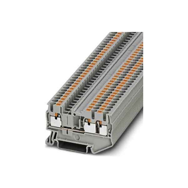 Durchgangsklemme, Nennspannung: 800 V, Nennstrom: 24 A, Anschlussart: Push-in-Anschluss, Anzahl der Anschlüsse: 3, Querschnitt:0,14 mm² - 4 mm², AWG: 26 - 12, Breite: 5,2 mm, Höhe: 35,2 mm, Farbe: grau, Montageart: NS 35/7,5, NS 35/15