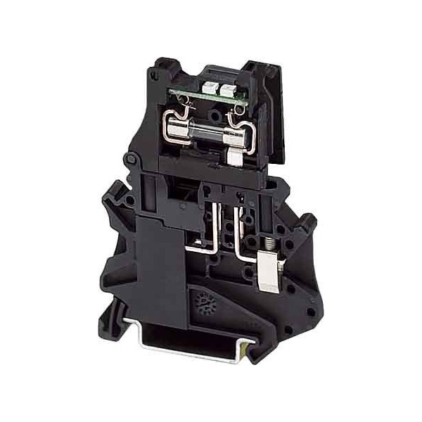 Hebelsicherungsklemme, Farbe schwarz, für 5 x 20 mm G-Sicherungseinsätze, mit LED für 24 V AC/DC