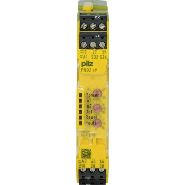 PNOZsigma Sicherheitsschaltgerät (standalone). Eingänge: 1 kanalige Beschaltung möglich Ausgänge: 3S, 1Ö, (t=0-300s). UB 24V DC, Breite: 17,5mm, steckbare Klemmen in Schraubtechnik. Kontaktblock und Zeitrelais zur Kontakterweiterung in Verbindung mit sicherheitsgerichteten Steuerungsteilen oder zum Ablauf einer sicheren Zeitfunktion (Anzug, Rückfall, Wisch).