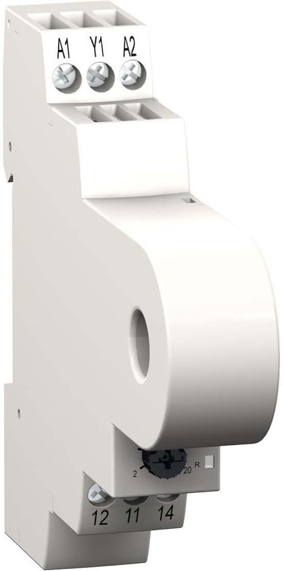 Harmony Control. Dieses Stromüberwachungsrelais verfügt über einen integrierten Stromwandler, so daß die zu überwachende Leitung berührungslos erfaßt wird. Dazu ist die Leitung durch das Loch im Wandler zu führen. Der einstellbare Stromgrenzwert 2-20 A wird auch Überschreitung überwacht. Zur Meldung ist ein Relaiswechsler vorhanden, der bis 5 A belastbar ist. Per Drahtbrücke kann die Funktion des Ausgangsrelais invertiert werden. Zwei LEDs zeigt den Status an. Die Baubreite beträgt 17,5 mm und die Montage erfolgt auf der Hutschiene. Versorgungsspannung 24-240 VAC/DC (50-60 Hz).