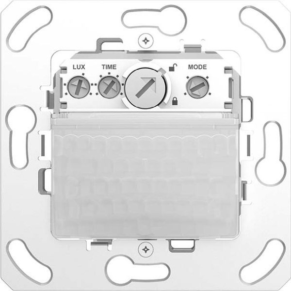 Passiv-Infrarot-Bewegungsmelder für UP-Wandmontage, 1 Kanal Licht, ohne Abdeckrahmen, Abdeckrahmen zur Integration in gängige Schalterprogramme als Zubehör erhältlich, halbrunder Erfassungsbereich 170° bis zu 14x17 m, Automatische präsenz- und helligkeitsabhängige Steuerung für Beleuchtung, Betrieb als Voll- oder Halbautomat, umschaltbar, Helligkeitsschaltwert einstellbar, Teach-in Funktion, Treppenlicht- und Impulsfunktion, Einschaltverzögerung und Nachlaufzeit einstellbar, Einschränkung des Erfassungsbereichs möglich, Integrierter Taster (blockierbar), Erweiterung des Erfassungsbereiches durch Master/Slave-Schaltung