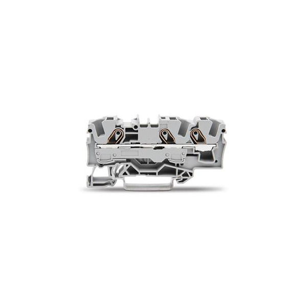 3-Leiter-Durchgangsklemme; 6 mm²; für Anwendungen Ex e II geeignet; seitliche und mittige Beschriftung; für Tragschiene 35 x 15 und 35 x 7,5; Push-in CAGE CLAMP®; 6,00 mm²; grau