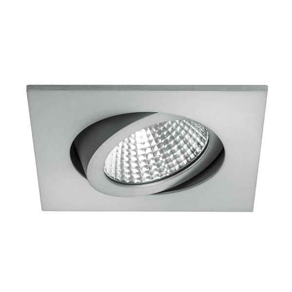 LED-Einbaustrahler, alu matt, quadratisch. Ausgeführt in kompakter Bauform für werkzeuglose Schnellmontage zum Deckeneinbau. Ausführung: Plug&Play, Montageart: Einbaumontage, Montageort: Deckenmontage, Material: Aluminium / Polycarbonat, Schutzart raumseitig: nach DIN EN 60529: IP20, Schutzklasse: (EN 61140) III, Leistung: 7W, Anzahl der Leuchtmittel / Fassungen: 1.0 Stk, Lichtstrom: 740 lm, Farbtemperatur: 2.700 K, Abstrahlwinkel: 38°, Verstellbarkeit: schwenkbar, Mit Betriebsgerät: Nein, Dimmbar: Abhängig von Betriebsgerät, Art der Dimmung: Abhängig vom Betriebsgerät.