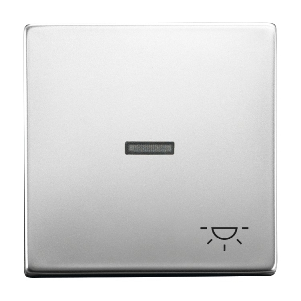 A2958 Wippe mit Aufdruck mit kleiner transparenter Kalotte mit Symbol >Licht< pur edelstahl. Designlinie: pur edelstahl