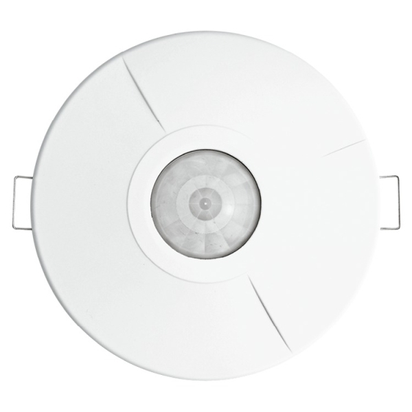 A2509 Zum helligkeits- und bewegungsabhängigen Schalten von Beleuchtungen. Erfassungsbereich (bei 3 m Montagehöhe) kreisförmig, bis zu 8 m Durchmesser. Für halb- und vollautomatischen Betrieb. Zusätzliche Ein-/Ausschaltmöglichkeit über Tastereingang. Anpassung des Erfassungsbereiches über beiliegende Maskierungselemente möglich. Mit helligkeitsunabhängigem Testbetrieb zur Auswertung des Erfassungsbereiches. Mit Erfassungsanzeige im Testbetrieb. Mit Teach-In Funktion der Helligkeitsschaltschwelle, IR Handsender erforderlich. Montagemöglichkeit in Kombination mit Einbau- und Gerätedosen. Deckeneinbaumontage über integrierte Federbügel. Einstellelemente frontseitig zugänglich. Geringe Aufbauhöhe (31 mm). Überwachungsdichte: 32 Sektoren mit 128 Schaltsegmenten. Ausschaltverzögerung: ca. 5 s - 30 min. oder Kurzzeitimpuls einstellbar. Physikalisch bedingt ist die Erfassungsreichweite bei zentraler Annäherung geringer. Bei Einsatz in Verbindung mit einem Relais/Schütz ist ein RC-Löschglied Art.-Nr. 6899 vorzusehen. Designlinie: BasicLINE