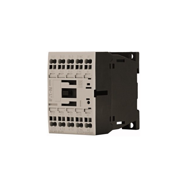 Leistungsschütz für Motoren, Leistungsschütze bis 170 A, 3-polig, Gebrauchskategorie: AC-1: Nicht induktive oder schwach induktive Last, Widerstandsöfen, AC-3/AC-3e: Käfigläufermotoren: Anlassen, Ausschalten während des Laufes, AC-4: Käfigläufermotoren: Anlassen, Gegenstrombremsen, Reversieren, Tippen, Anschlusstechnik: Push-in-Klemmen, Geeignet auch für Motoren der Effizienzklasse IE3, Anzahl der Pole: 3-polig, Bemessungsbetriebsstrom AC-3 380 V 400 V: Ie= 9 A, Bemessungsbetriebsstrom AC-1 konventioneller thermischer Strom, 3-polig, 50 - 60 Hz offen bei 40 °C: Ith = Ie= 22 A, gekapselt: Ith= 18 A, Bemessungsbetriebsstrom AC-1 konventioneller thermischer Strom 1-polig offen: Ith= 50 A, gekapselt: Ith= 45 A, max. Bemessungsbetriebsleistung Drehstrommotoren 50 - 60 Hz AC-3 220 V 230 V: P= 2.5 kW, 380 V 400 V: P= 4 kW, 660 V 690 V: P= 4.5 kW, max. Bemessungsbetriebsleistung Drehstrommotoren 50 - 60 Hz AC-4 220 V 230 V: P= 1.5 kW, 380 V 400 V: P= 2.5 kW, 660 V 690 V: P= 3.6 kW, kombinierbar mit Hilfsschalter: DILM12-XHI-PI, DILM32-XHI-PI, DILA-XHI(V)-PI, Kontaktbestückung Ö = Öffner: 1 Ö, Schaltglieder nach EN 50012., Mit Spiegelkontakt., Stromart AC/DC: Gleichstrombetätigung