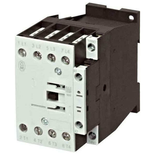 Leistungsschütz, Applikation: Leistungsschütz für 4-polige Verbraucher, Leistungsschütze bis 200 A, 4-polig, Gebrauchskategorie: AC-1: Nicht induktive oder schwach induktive Last, Widerstandsöfen, AC-3: Käfigläufermotoren: Anlassen, Ausschalten während des Laufes, Anschlusstechnik: Schraubklemmen, Pole: 4-polig, 380 V 400 V: Ie= 12 A, konventioneller thermischer Strom, 3-polig, 50 - 60 Hz offen bei 40 °C: Ith = Ie= 22 A, gekapselt: Ith= 18 A, konventioneller thermischer Strom 1-polig offen: Ith= 60 A, gekapselt: Ith= 54 A, 220 V 230 V: P= 3.5 kW, 380 V 400 V: P= 5.5 kW, 660 V 690 V: P= 6.5 kW, Hinweise: Schaltglieder nach EN 50012., Integrierte Varistor-Schutzbeschaltung., Stromart AC/DC: Gleichstrombetätigung