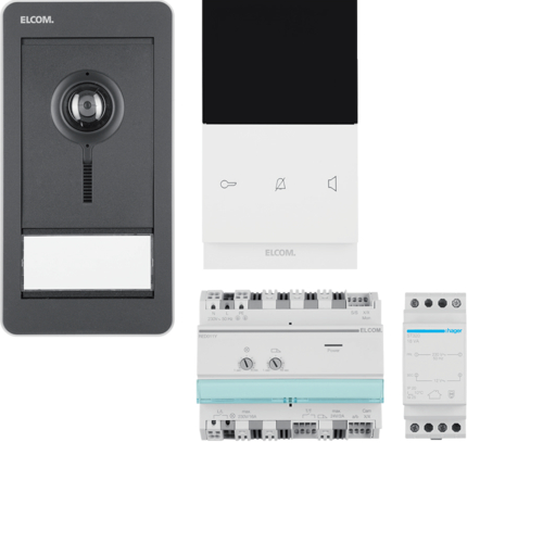 HOME VideoSet 1 Teilnehmer AP 2D Außenstation anthrazit/Innenst. TOUCH polarweiß. Video-Sprechanlagen Set nach DIN EN 50486 in 2Draht-Technik bestehend aus Innenstation Video TOUCH, Aussenstation Video HOME, Strangversorgung und Sicherheitstransformator. Innenstation zur Wandmontage oder auf eine Gerätedose nach DIN 49073 bestehend aus Tragplatte mit Anschluss-Klemmblock und passenden Video-Designrahmen, beleuchtetes TFT-Farbdisplay 3,5 Zoll. Innenstation in 3 Bereiche eingeteilt, die im Display als Klartextanzeige angezeigt wird: Haupt-Funktionstasten mit 3 hinterleuchtete Symbolen (Öffnen, Stummschaltung, Gespräch annehmen), Tastenfeld mit 3 Tasten und Touch-Wischfeld zur Bedienung im Menü. Funktionen: Rufannahme/Rufen, Hören, Sprechen und Sehen, Türöffnen und Licht schalten, akustische und optische Rufsignalisierung. Darstellung des Kamerabildes von der Türstation auf einem integrierten Farb-Display. 16 einstellbare Ruftonmelodien, Tür-/Etagen- oder Internruf-Zuordnung, Ruftonlautstärke und Mikrofonempfindlichkeit stufenweise einstellbar und Rufton abstellbar. Parallelbetrieb bis zu 3 Innenstationen. Etagen-Rufweiterleitung an gleich adressierte Innenstationen. Freisprechen oder Push-to-Talk. DREHFIX-Funktion: Ein-Mann-Inbetriebnahme durch Adressierung mit Drehcodierschalter. Sonderfunktionen über DIP-Schalter sperrbar. Außenstation zur Montage AP im Kunststoffgehäuse, Farbkamera mit kratzfester Abdeckung, ohne sichtbare Schrauben, flächenbündige(s) Namensschild(er) (von vorn wechselbar) mit Ruftaste(n) inklusive weißer LED-Hinterleuchtung und steckbarem Anschluss-Klemmblock mit Schraubklemmen. Vorverdrahtete Frontplatte mit Elektronikkomponenten in gekapselter Monoblock-Bauweise mit Lautsprecher, Mikrofon und Kamera. Geräte-Konfiguration über rückseitiges LED-Display mit 3 Softtasten und 7-Segment-Anzeige, Anzeigemodus 180 Grad drehbar für eine optimale Lese- und Bedienbarkeit sowie automatische Adressierung bei erstmaligem Spannungszuschaltung. Umgebungslicht abhängige Einschaltung der Tastenbeleuchtung, anpassbar an Umgebungsverhältnisse über Helligkeitssensor. Funktionen: Kamera horizontal und vertikal ein- und feststellbar von vorne, Umgebungslicht abhängige Einschaltung einer integrierten IR-Beleuchtung zur Unterstützung der Kamerafunktion bei Dunkelheit, integrierte Kameraheizung zur Vermeidung von Kondensat- und Frostbeschlag der Kamerakugel. Integrierter Türöffnerkontakt, Ruftaste mit Licht-/Türöffner-/Relais-Funktion einstellbar. Lautstärke, Mikrofonempfindlichkeit, Türöffnerfunktion und Ruftaster-Hinterleuchtung einstellbar. Ruftaster mit Quittierungston (abschaltbar) und taktiler Rückmeldung. Lautsprecher und Mikrofon sabotagegeschützt. Ein-Mann-Inbetriebnahme durch LED-Display Konfiguration.