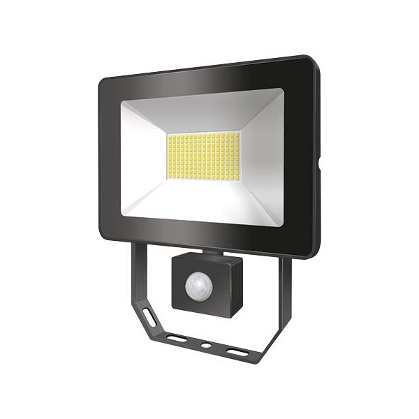 Der kompakte Strahler AFL BASIC eignet sich für die platzsparende Ausleuchtung von Verkehrswegen, Garagen und Plätzen oder die Beleuchtung von Fassaden und Schildern.. Der integrierte Bewegungsmelder ermöglicht einen automatischen und energieeffizienten Betrieb.. LED-Strahler mit kompaktem Aluminiumgehäuse für die unauffällige Montage, weiß.. 50 W Lichtleistung mit 3000 K Lichtfarbe (weiß).. Sehr gute Effizienz mit 100 lm/W.