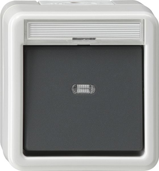 "Wipptaster 10 AX 250 V~ mit Beschriftungsfeld Grau Schließer 1-polig mit sep. Meldekontakt Auch beleuchtet anschließbar. Symbole ""Licht"", ""Klingel"" und ""Tür"" liegen bei."