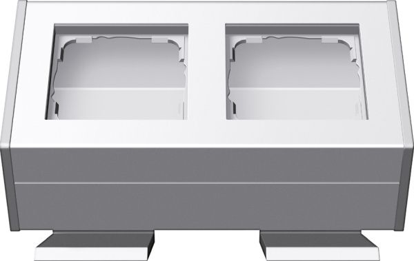 Profil 55 mit Befestigungswinkel Aluminium Reinweiß glänzend (lackiert) 2fach Merkmale: Installationsprofil aus Aluminium für die waagerechte und senkrechte Montage. Mit Leitungs- und Kanaleinführung. Die Leitungseinführung ist sowohl Unterputz als auch Aufputz möglich. Vereinfachte Montage durch Einklipsen der Einsätze. Hinweise: Wippschalter, Taster und SCHUKO-Steckdosen mit Klappdeckel sind beim System 55 auf der Wand in Verbindung mit diesen Gehäusen generell tropfwassergeschützt (IP21). Schlüsselschalter und 3-Stufenschalter können nicht in diese Gehäuse eingebaut werden. Über die Befestigungswinkel bzw. Standfüße kann das Profil 55 sowohl als Tischgehäuse als auch unter Hängeschränken oder in Ecken installiert werden. Lieferumfang:
