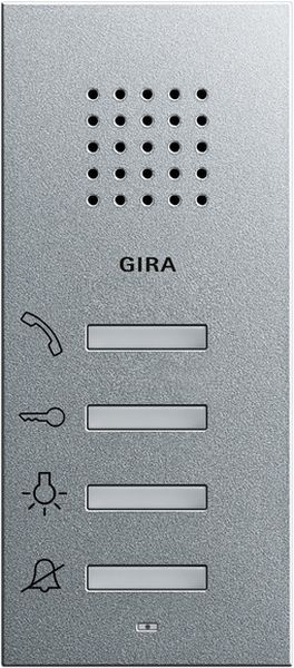 Wohnungsstation AP Farbe Alu System 55 Merkmale: Komplett vormontierte Wohnungsstation AP. Dadurch schnelle und saubere Montage möglich. Durch Integration der Designvarianten der unterschiedlichen Schalterprogramme entsteht ein einheitliches Erscheinungsbild von Türkommunikation und Elektroinstallation. Montage sowohl mit als auch ohne Abdeckrahmen. Einfache Montage durch steckbare Schraubklemmen auf der Montageplatte. Die Kontaktierung zur Wohnungsstation erfolgt beim Aufstecken der Wohnungsstation auf die Montageplatte. Einfache Demontage der Wohnungsstation bei Renovierungsarbeiten. Befestigungslöcher für die Montage. Signalübertragung und Versorgung der Wohnungsstation über verpolungssicheren und kurzschlussfesten 2-Draht-Bus. Parallelschaltung von bis zu drei Wohnungsstationen möglich (bei Spannungsversorgung über 2-Draht-Bus). Einmann-Inbetriebnahme durch einfache Inbetriebnahme-Prozedur. Ruftonunterscheidung zwischen Türruf, Internruf und Etagenruf. Auswahl von fünf verschiedenen Ruftonmelodien, die einzelnen Ruftasten individuell zugeordnet werden können. Freisprechfunktion (sprachgesteuertes Gegensprechen mit Echo- und Hintergrund-Geräuschunterdrückung). Durchsetzfunktion bei lauten Hintergrundgeräuschen während der Sprechverbindung. Mithörsperre. Bedientasten mit integrierten Leuchtdioden zur Zustandsanzeige. Die Bedientasten der Wohnungsstation AP steuern die folgenden Funktionen in Verbindung mit dem Schaltaktor oder dem Unterputz-Schaltaktor: Schalten von Licht und anderen Funktionen. Ansteuerung des Türöffners. Einstellen der Ruftonmelodie. Rufton ein- und ausschalten. Rufannahme. Aktivierung der Durchsetzfunktion. Einstellung von Rufton- und Sprechlautstärke. Hinweise: Montage ohne Abdeckrahmen möglich. Bei Montage in Verbindung mit System 55 oder Flächenschalter ist ein Abdeckrahmen 2fach ohne Mittelsteg erforderlich. Bei der Montage auf eine Gerätedose ist ein Abdeckrahmen erforderlich Mit dieser Komponente ist der Aufbau von Türkommunikationsanlagen mit bis zu 70 Teilnehmern möglich (z. B. 1 x Einbaulautsprecher, 5 x Erweiterungsmodul für Einbaulautsprecher, 68 x Wohnungsstation AP). Lieferumfang: