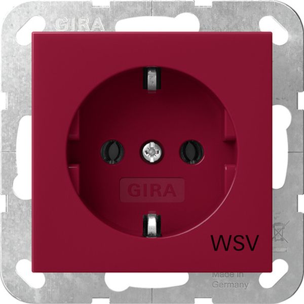 SCHUKO-Steckdose 16 A 250 V~ Rot glänzend mit roter Abdeckung und Aufdruck WSV (weitere Sicherheitsversorgung) Merkmale: Tragring ist in Verbindung mit den Befestigungskrallen und Krallenschrauben geerdet. Schnellbefestigung (ca. 3,5 Umdrehungen pro Befestigungskralle). Eingehauste Spreizkrallen. Einfachere Krallenbefestigung durch robusten Schraubenkopfantrieb PZ1 / Schlitz / PH. Vereinfachte Installation durch patentierte Anordnung der großen Schlüssellochprofile mittels Dosenschrauben. Geringe Einbautiefe. Große, ergonomisch geformte Lösehebel. Stabiler Erdungsbügel mit massiven Erdungsfingern. Stabiler und korrosionsbeständiger Stahltragring. Bruchsicherer Thermoplastsockel. Hinweise: Die Sockel der SCHUKO-Steckdosen sind farblich entsprechend gekennzeichnet. Lieferumfang: