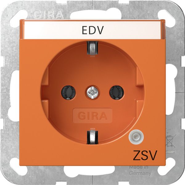 SCHUKO-Steckdose 16 A 250 V~ mit grünem Kontrolllicht und Beschriftungsfeld Orange glänzend mit oranger Abdeckung und Aufdruck ZSV (zusätzliche Sicherheitsversorgung) Merkmale: Tragring ist in Verbindung mit den Befestigungskrallen und Krallenschrauben geerdet. Schnellbefestigung (ca. 3,5 Umdrehungen pro Befestigungskralle). Eingehauste Spreizkrallen. Einfachere Krallenbefestigung durch robusten Schraubenkopfantrieb PZ1 / Schlitz / PH. Vereinfachte Installation durch patentierte Anordnung der großen Schlüssellochprofile mittels Dosenschrauben. Geringe Einbautiefe. Große, ergonomisch geformte Lösehebel. Stabiler Erdungsbügel mit massiven Erdungsfingern. Stabiler und korrosionsbeständiger Stahltragring. Bruchsicherer Thermoplastsockel. Hinweise: Die Sockel der SCHUKO-Steckdosen sind farblich entsprechend gekennzeichnet. Lieferumfang: Beschriftungsschild EDV ist beigefügt.