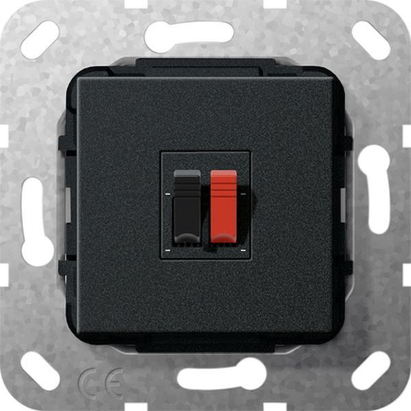 Einsatz Lautsprecheranschluss 1fach Merkmale: Frontseitiger Anschluss: Steckklemmen, rot / schwarz. Rückseitiger Anschluss: Schraubklemmen. Hinweise: Nur für Schraubbefestigung. Lieferumfang: